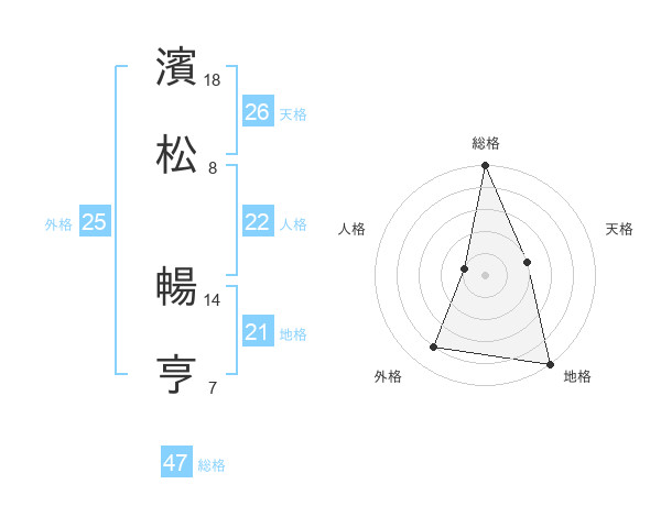 濱松 暢亨さんの総格は47画の5点!