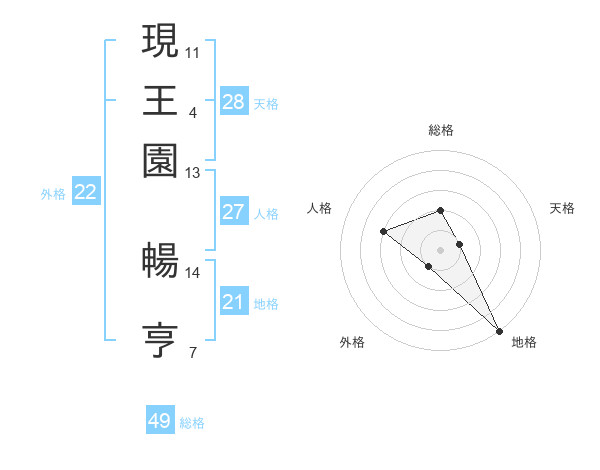 現王園 暢亨さんを姓名の画数から五運を鑑定