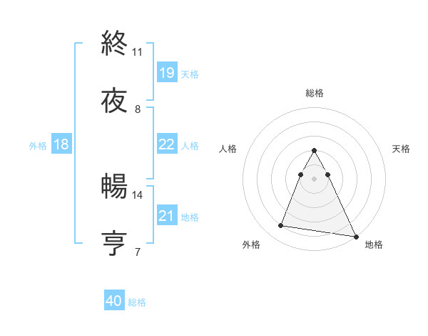 終夜 暢亨さんを姓名の画数から五運を鑑定
