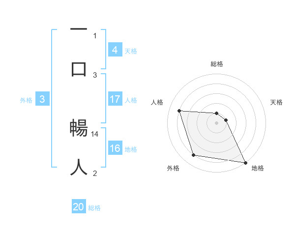 一口 暢人さんの総格は20画の1点!