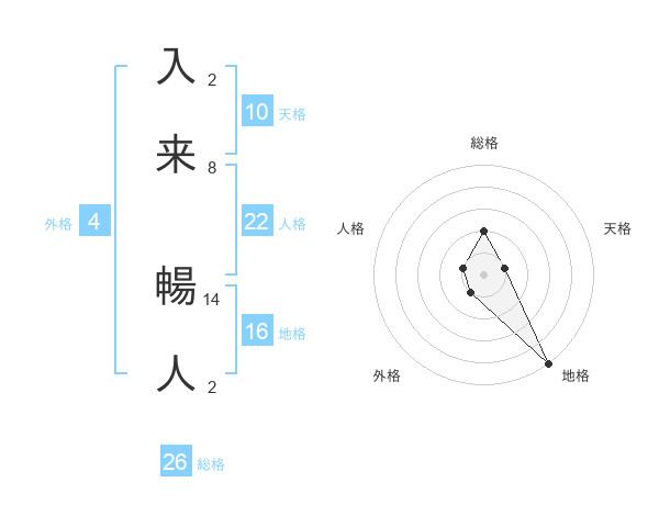 入来 暢人さんの総格は26画の2点!