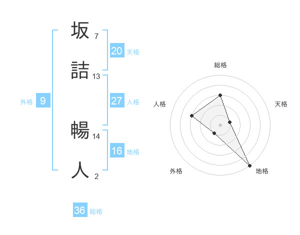坂詰 暢人さんの総格は36画の3点!