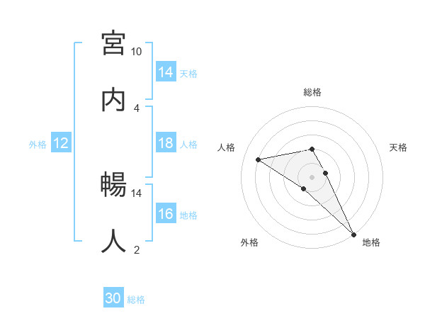 宮内 暢人さんの総格は30画の2点!