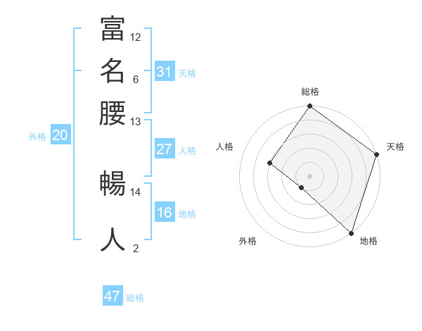 富名腰 暢人さんの総格は47画の5点!