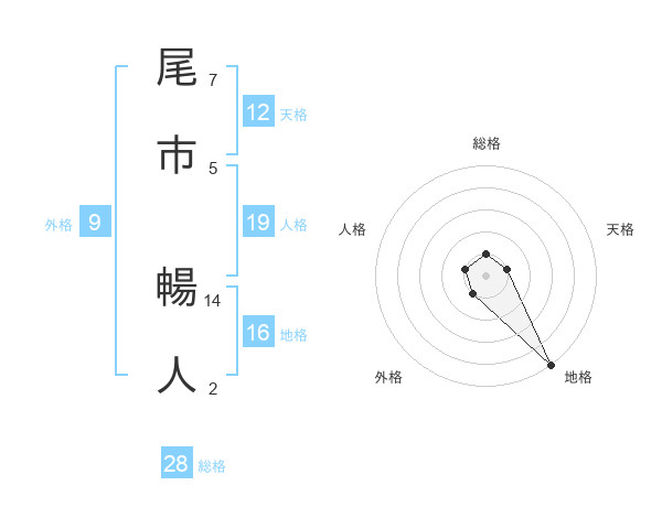 尾市 暢人さんの総格は28画の1点!