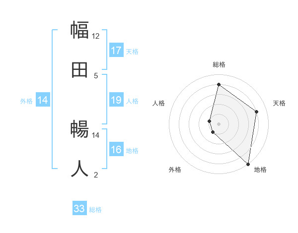 幅田 暢人さんの天格は17画の4点!