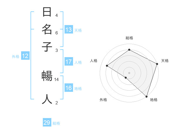 日名子 暢人さんの総格は29画の4点!
