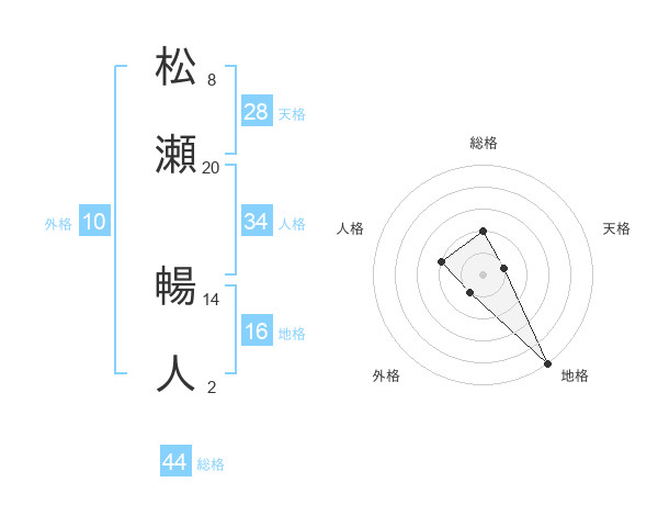 松瀬 暢人さんの総格は44画の2点!