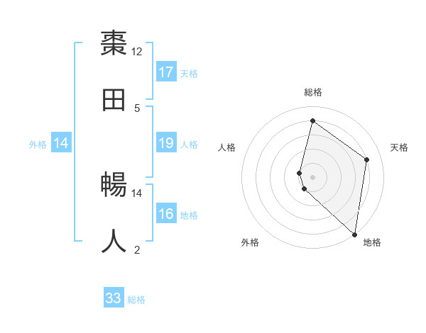 棗田 暢人さんの天格は17画の4点!
