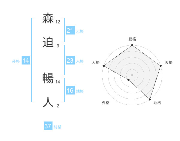 森迫 暢人さんを姓名の画数から五運を鑑定