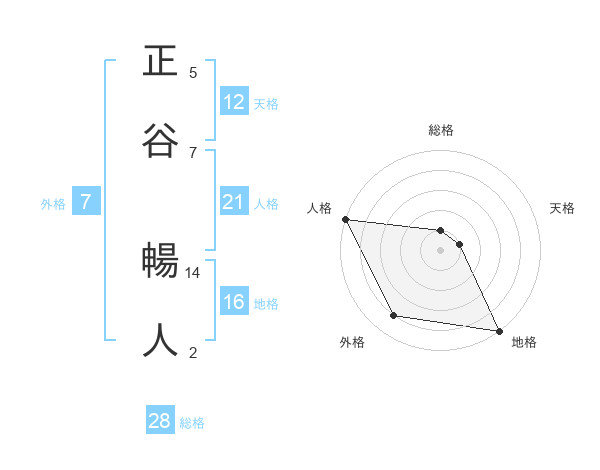正谷 暢人さんを姓名の画数から五運を鑑定