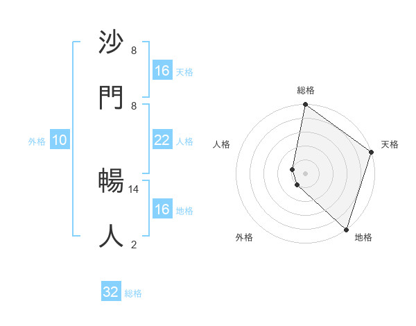 沙門 暢人さんの天格は16画の5点!