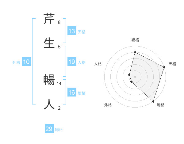 芹生 暢人さんを姓名の画数から五運を鑑定