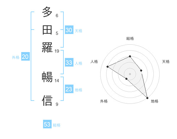 多田羅 暢信さんを姓名の画数から五運を鑑定