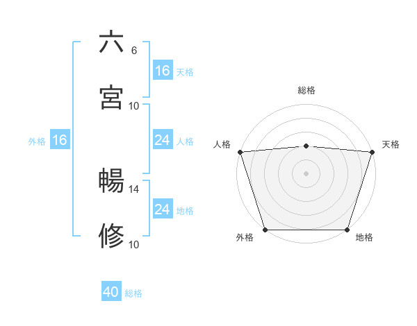 六宮 暢修さんの天格は16画の5点!