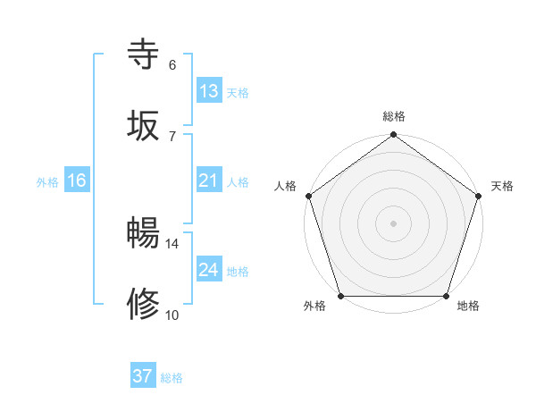 寺坂 暢修さんの総格は37画の5点!