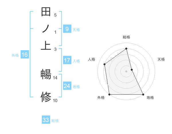 田ノ上 暢修さんを姓名の画数から五運を鑑定