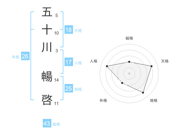 五十川 暢啓さんの総格は43画の2点!