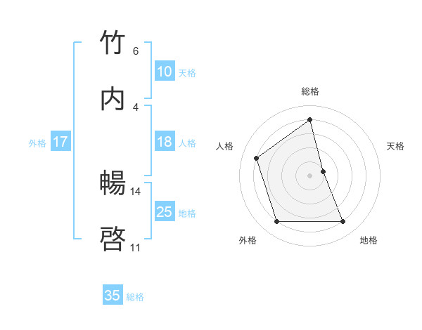 竹内 暢啓さんを姓名の画数から五運を鑑定