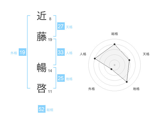 近藤 暢啓さんを姓名の画数から五運を鑑定