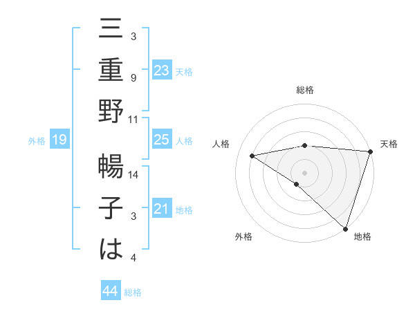 三重野 暢子はさんを姓名の画数から五運を鑑定