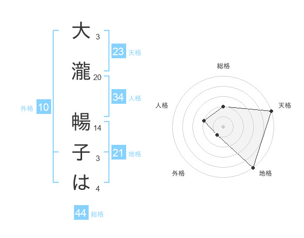 大瀧 暢子はさんを姓名の画数から五運を鑑定