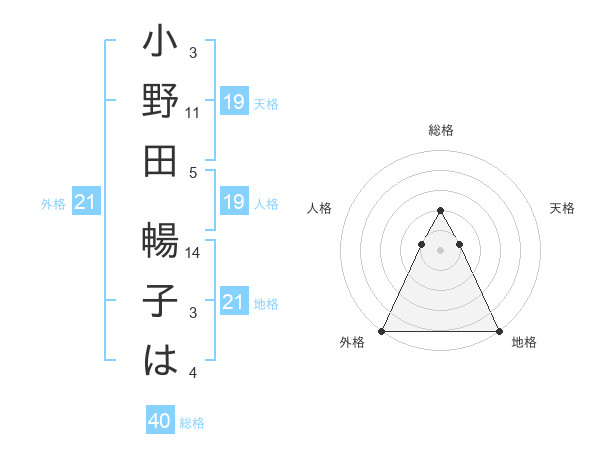 小野田 暢子はさんの天格は19画の1点!