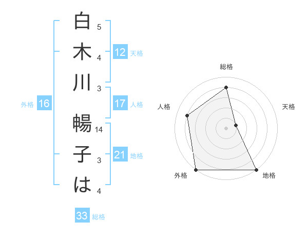 白木川 暢子はさんを姓名の画数から五運を鑑定