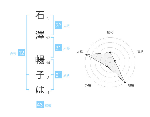 石澤 暢子はさんを姓名の画数から五運を鑑定