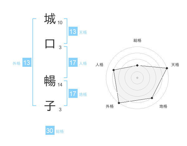 城口 暢子さんの外格は13画の5点!