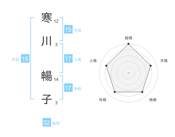 寒川 暢子さんの天格は15画の4点!