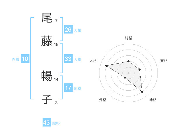 尾藤 暢子さんの天格は26画の2点!