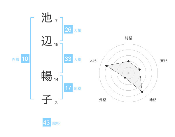 池辺 暢子さんの総格は43画の2点!