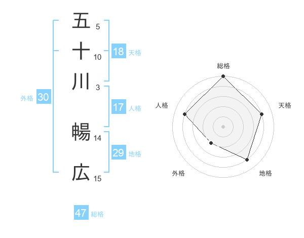 五十川 暢広さんを姓名の画数から五運を鑑定