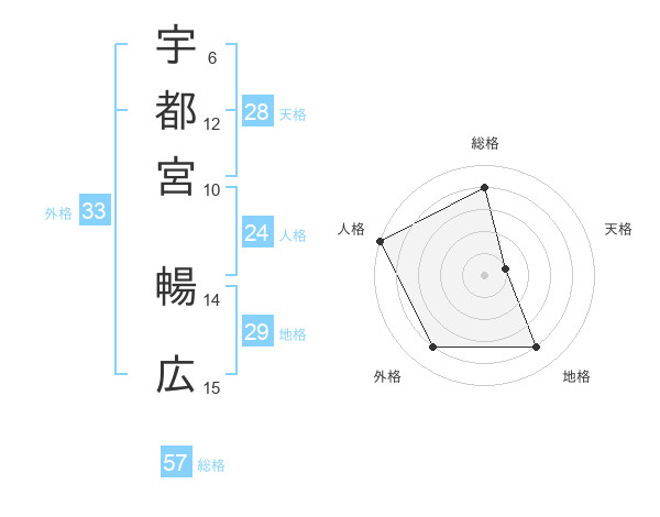 宇都宮 暢広さんを姓名の画数から五運を鑑定