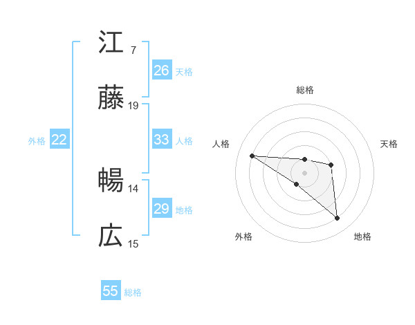 江藤 暢広さんを姓名の画数から五運を鑑定