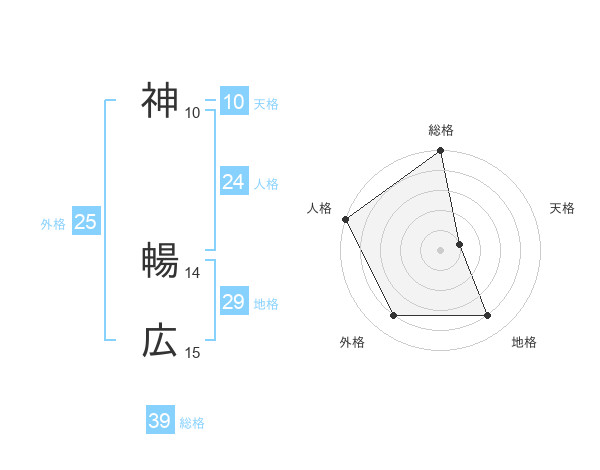 神 暢広さんの総格は39画の5点!
