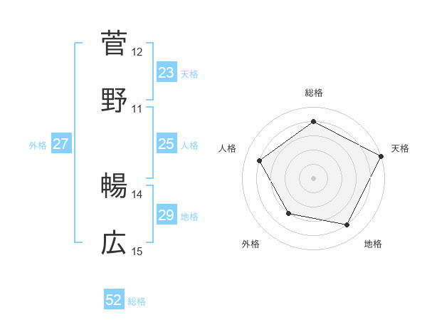 菅野 暢広さんを姓名の画数から五運を鑑定
