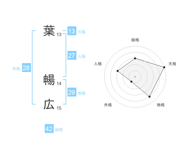 葉 暢広さんの総格は42画の3点!
