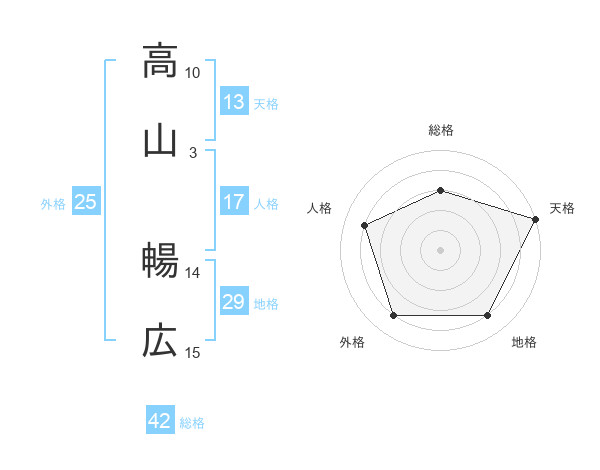 高山 暢広さんの総格は42画の3点!
