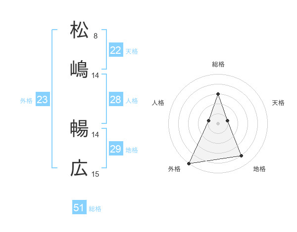 松嶋 暢広さんを姓名の画数から五運を鑑定