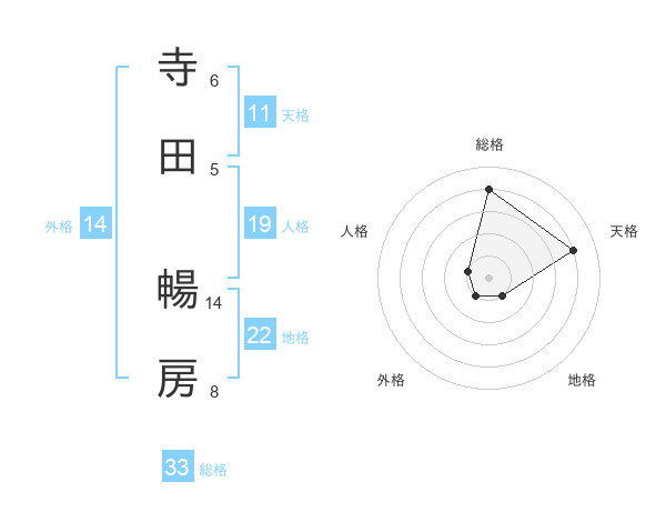 寺田 暢房さんを姓名の画数から五運を鑑定