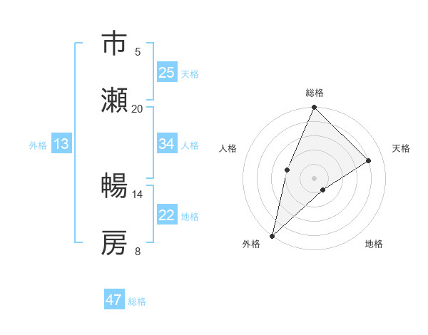 市瀬 暢房さんの総格は47画の5点!