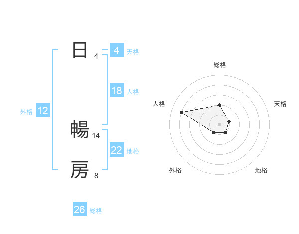 日 暢房さんの総格は26画の2点!