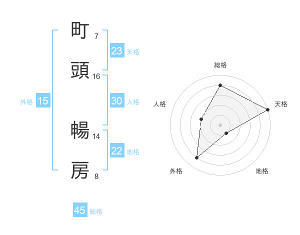町頭 暢房さんを姓名の画数から五運を鑑定
