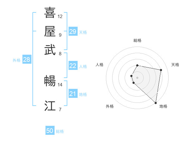 喜屋武 暢江さんの天格は29画の4点!