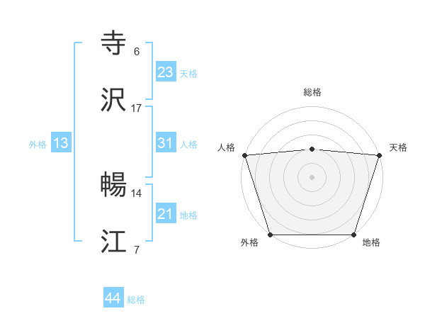 寺沢 暢江さんの天格は23画の5点!
