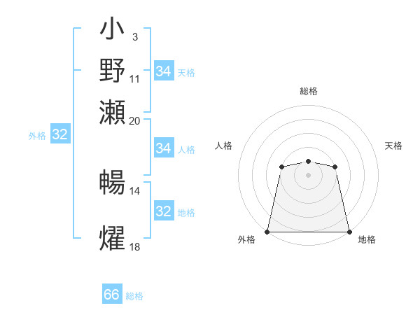 小野瀬 暢燿さんを姓名の画数から五運を鑑定