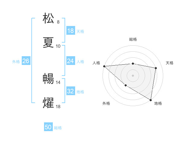 松夏 暢燿さんの天格は18画の4点!