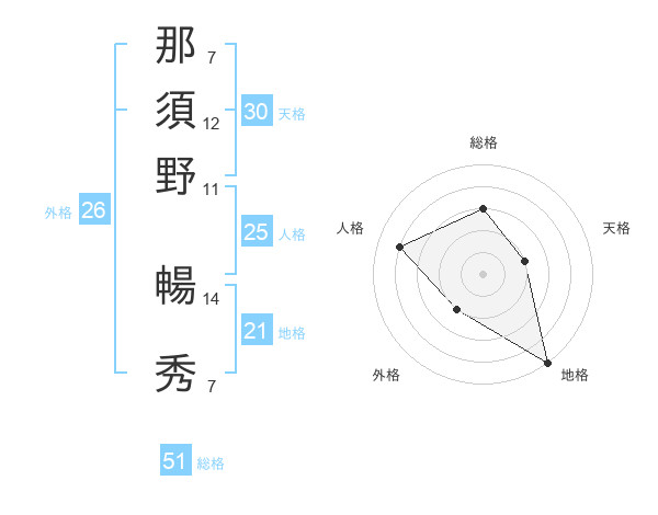 那須野 暢秀さんを姓名の画数から五運を鑑定